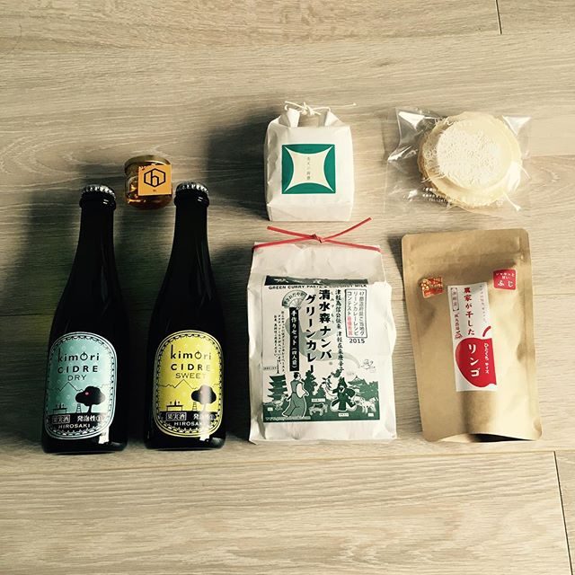 12月分の #自然派食品 が到着☺︎ #弦や #清水森ナンバグリーンカレー手作りセット #弘前シードル工房kimori#シードル #BeFavo#世界遺産白神ハチミツ #風丸農業 #農家が干したりんご #青天の霹靂 #佐藤煎餅店#津軽煎餅