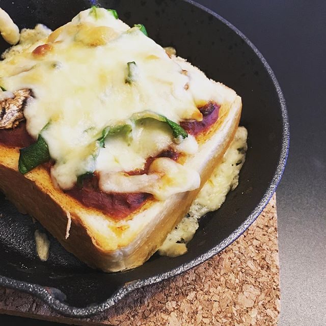 早速昨日届いた#スキレット #ペリカン の#食パン で #ピザトースト #ニトスキ #朝ごはん #朝食
